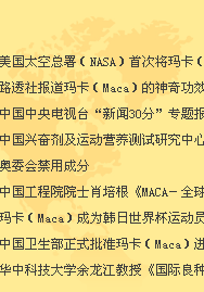 MACA玛卡片受到全世界的广泛认可。美国CNN、DISCOVERY全面介绍了玛卡的神奇功效,英国BBC国际电视台、日本读卖新闻、台湾东森更是专题报道,强力推荐!