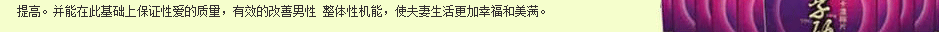 CCTV国际电视台30分报道称:“传统用 于增加男性精子数量的一种植物——玛卡,对现代医学攻克某些性功能障碍难题带来希望。研究者发现,服用玛卡的对象在性能力方面有了从180%—240%不 等的提高。他们的平均活跃精子数量也增加了1倍多。并且,服用药片的试验对象表示,他们日常生活中,感到比过去精力充沛和注意力集中。